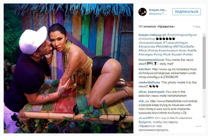 Музей мадам Тюссо в Лас-Вегасе столкнулся с нездоровым поведением посетителей. В течение двух недель сотрудники наблюдают ажиотаж вокруг восковой фигуры Ники Минаж. Копия рэп-исполнительницы была установлена 4 августа в честь годовщины клипа Anaconda. Минаж стала первой женщиной-рэпером, которую отлили в воске.