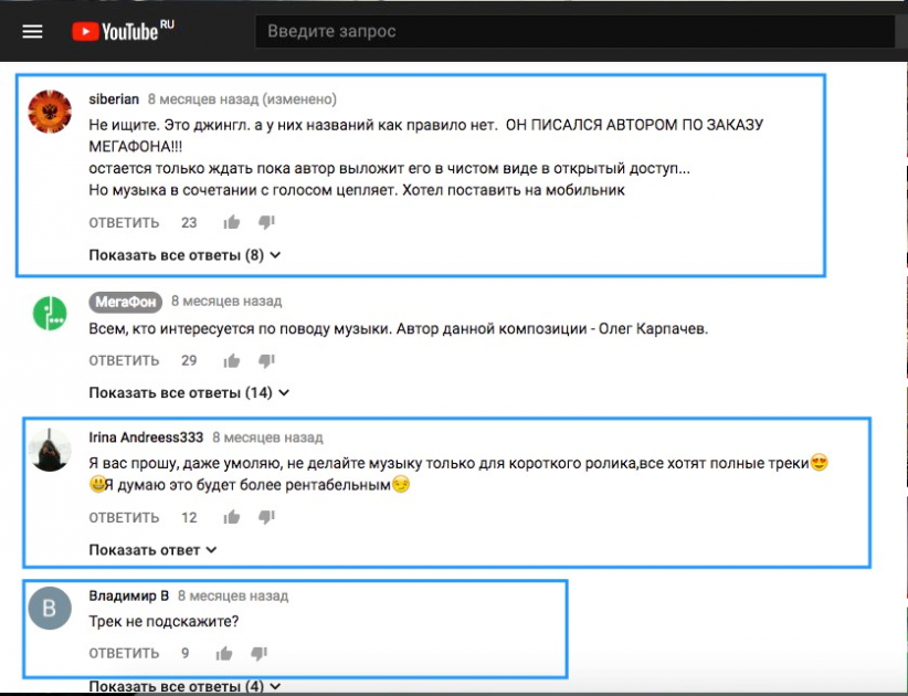 Иногда музыкальная заставка и вовсе начинает жить отдельно от рекламного ролика. Например, музыкальное сопровождение рекламы «Интернет там, где ты», написанное композитором Олегом Карпачевым, пришлось по вкусу пользователям — после выхода ролика в сети посыпался шквал вопросов о музыке, а сейчас на этот трек даже сделано несколько ремиксов.
