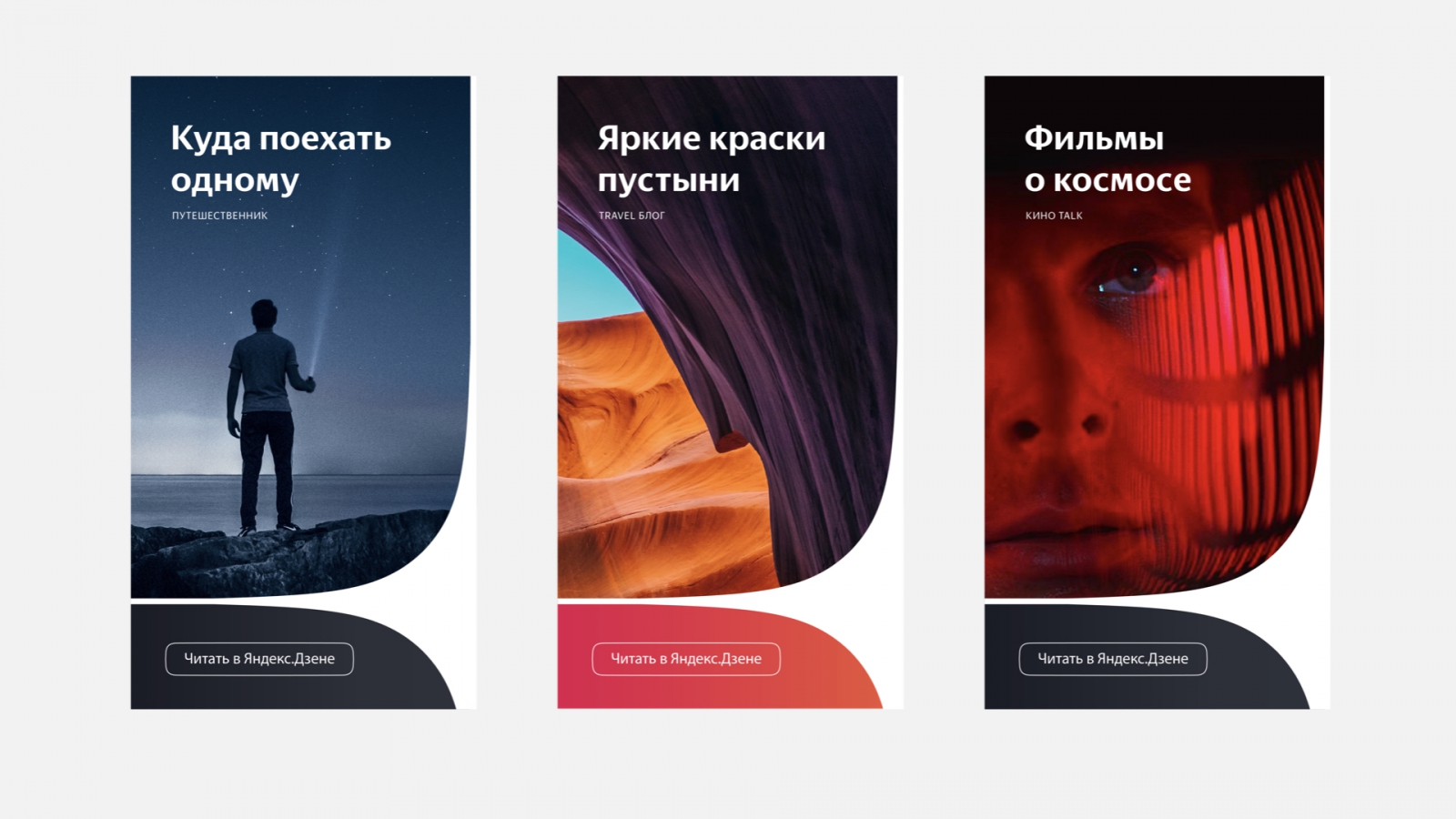 «Яндекс.Дзен» работает с 2015 года, и за это время сервис серьезно изменился. Сначала он был рекомендательной лентой, в которой пользователи читали статьи только из внешних источников: человек по клику из ленты переходил на сайт издания. Сейчас «Дзен» — это полноценная платформа не только для чтения, но и для создания контента. Уже более 20 000 авторов регулярно публикуют в «Дзене» свои статьи, видео и нарративы. Поэтому смена фирменного стиля давно назрела.