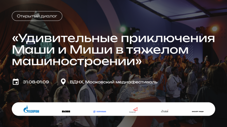На Московском медиафестивале на ВДНХ пройдет открытый диалог, на котором расскажут о создании кинокартины «Удивительные приключения Маши и Миши в тяжелом машиностроении». Мероприятие состоится в рамках Креативной Лаборатории ВЫЗОВ 31 августа в 16:30 и 1 сентября в 12:00.