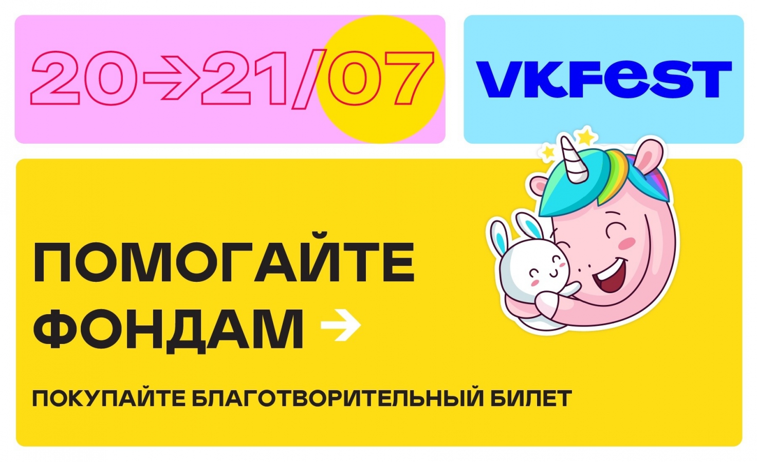 Гости VK Fest смогут поддержать мероприятие и купить благотворительные билеты, цена на которые будет на 100 рублей выше. Вконтакте и Радио Рекорд отправят 200 рублей с каждого проданного билета в фонд.