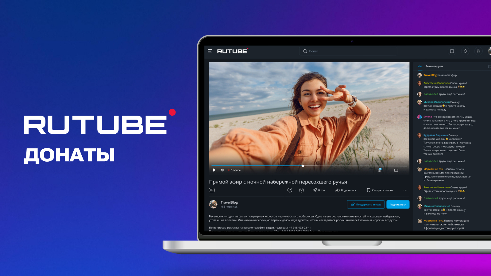 Видеохостинг Rutube, входящий в «Газпром-Медиа Холдинг», добавил на платформу функцию донатов. До недавнего времени на Rutube можно было поощрить старания авторов при помощи сторонних сервисов, рассказали Sostav в пресс-службе компании.