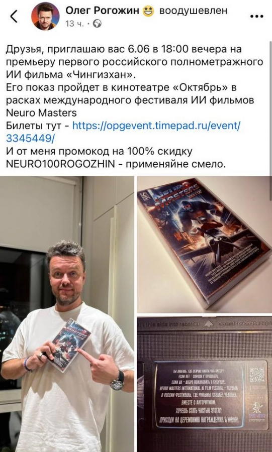 18:20 — Премьера первого в России полнометражного ИИ-фильма «Чингис Хан».