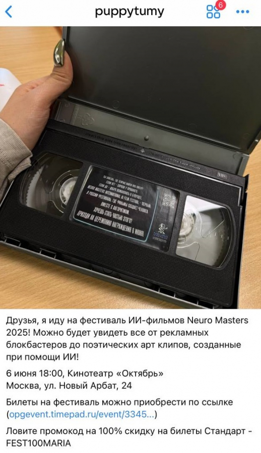 Позаботились организаторы и об ИИ-видеокреаторах: для них в ТГ-канале фестиваля проходят конкурсы на создание рекламных ИИ-видео с денежными призами.