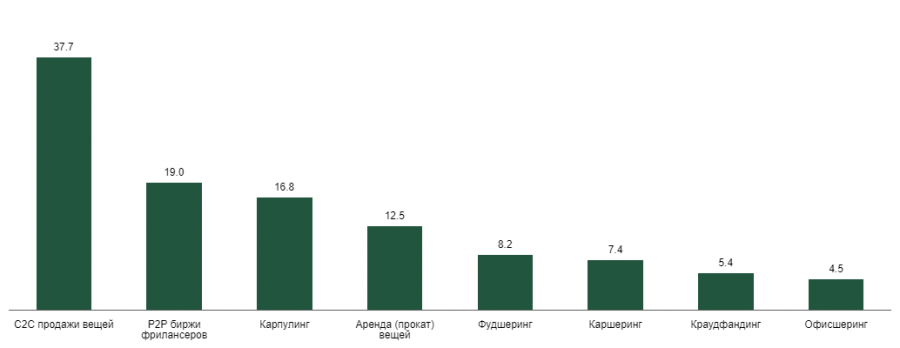 Почему люди пользуются шеринговыми сервисами, доли, %