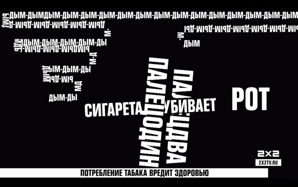 Саша Свирский впервые выступил в коллаборации с телеканалом, дополнив уходы на рекламу наивно-воинственными коллажами с участием животных и существ, на них похожих. В основу предупреждений о вреде курения легли детские рисунки Дениса Всесвятского, директора 2×2.