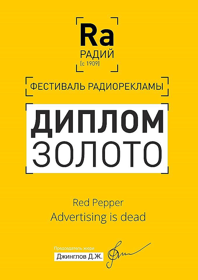 Для того, чтобы принять участие в фестивале, необходимо просто зайти на сайт проекта, ввести в специальную форму название агентства и работы, а затем просто получить долгожданный диплом. Свое счастье уже попытало агентство Red Pepper, которое получило два золота за работу «Advertising is dead» - на пензенском рекламном фестивале «Пена» и фестивале радиорекламы «Ra».