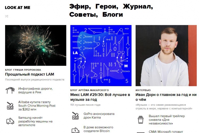 Look At Me был создан в 2006 году как стритстайл-блог. В 2007-м сайт перезапустили, он стал медиа о культуре, моде, музыке и событиях. В 2013 году под руководством Даниила Трабуна Look At Me стал изданием о креативных индустриях. Через год сайт возглавила Рита Попова.