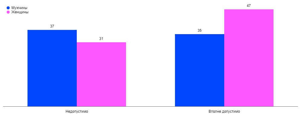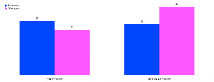 Молодые люди во многих ситуациях готовы поддержать тенденции равноправия между мужчинами и женщинами, они чаще считают правильным использовать феминитивы и приветствуют рекламу, где женщин призывают стать сильнее и смелее.