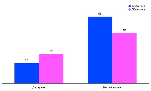 Поскольку тема равноправия мужчин и женщин все чаще звучит в публичном пространстве, рекламисты считают своим долгом «следовать тренду». Зря. Их целевую тренды такого рода не волнует. Но нельзя не отметить: среди молодых людей доля тех, кому не нужна подобная реклама, меньше. Граница между поколениями проходит по отметке 35 лет.
