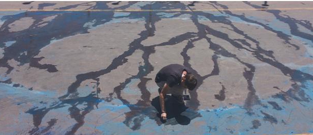 Андрей: Но кита нужно было спасать! Мы попробовали использовать стикеры Post-It, чтобы наклеить море. Они очень красиво развевались на ветру как волны, но потом поняли, что проблема вырубки лесов никуда не исчезла и спасать кита бумагой — плохая идея. Попробовали даже выложить море одеждой прохожих, но это было совсем нереально и очень сложно. Стало ясно - надо рискнуть. Через 4 часа сомнений мы всё-таки решили рисовать синим мелом и сразу же смыть его водой. Люди с радостью соглашались рисовать. Сняли всё одним дублем за 10 минут. И потом ещё час отмывали. Я так тщательно посуду не мою, как Артем драил набережную.