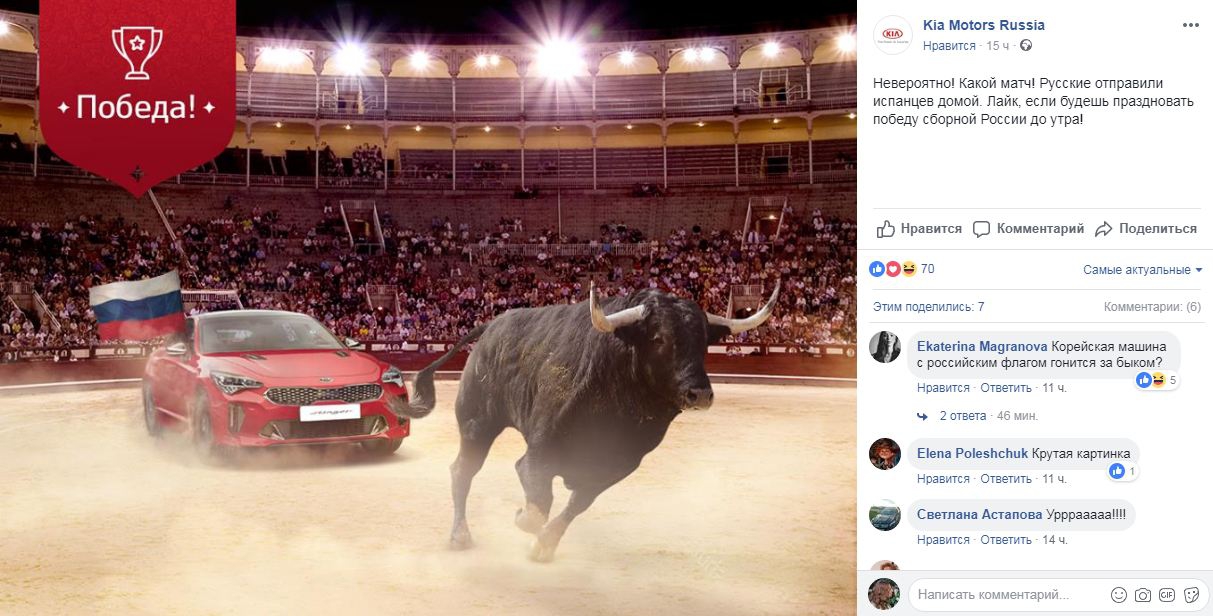 «МегаФон» и Kia также обыграли тему с испанской корридой, чтобы отметить триумф России.