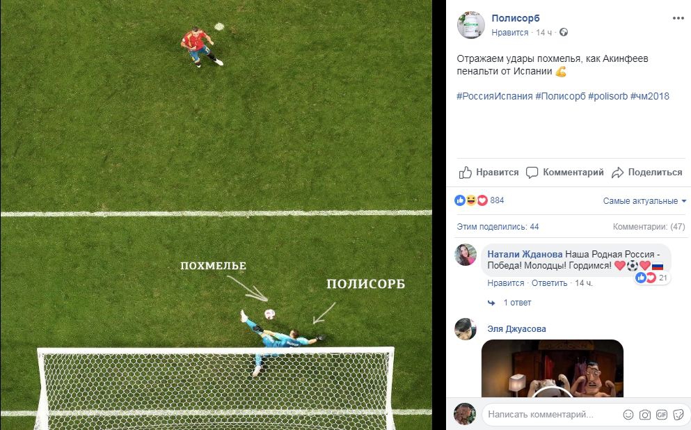 Бренд «Полисорб» намекнул, что отражает похмелье не хуже, чем Акинфеев — пенальти.