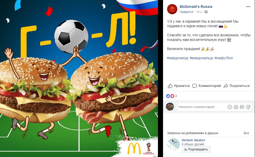 Visa и McDonald’s обошлись более или менее стандартными поздравлениями,
