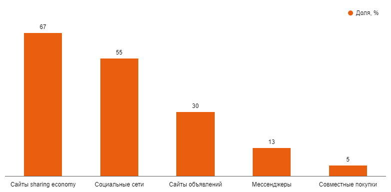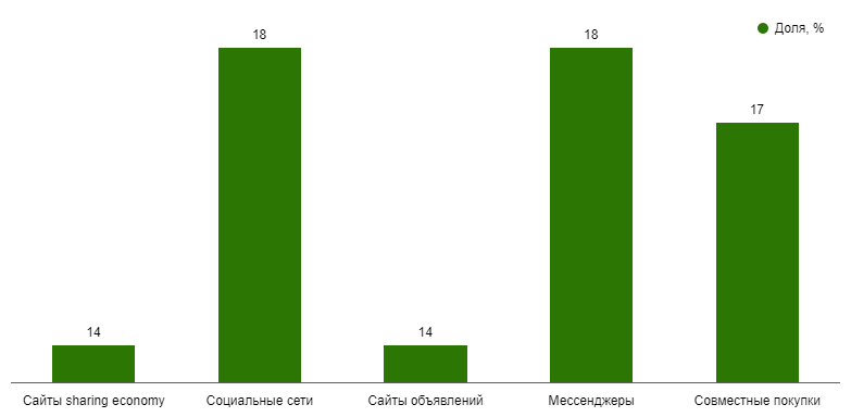 Социальные сети — признанный лидер в области интернет-активности пользователей. Именно на них люди тратят львиную долю времени, проводимую в Сети. Но вот покупают они чаще на т.н. «шеринговых» сайтах (sharing economy). Заметим в скобках, что речь идет о числе покупок, а не сумме потраченных на них средств.