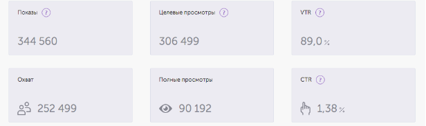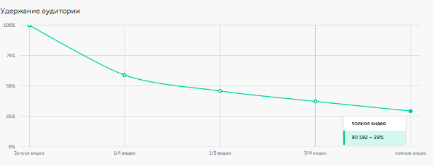 Количество полных просмотров видео - 90 192. Итоговая стоимость полного просмотра 30 секундного видео для рекламодателя оказалась в районе 3 рублей. Среднее время контакта с видео составило 14 секунд.