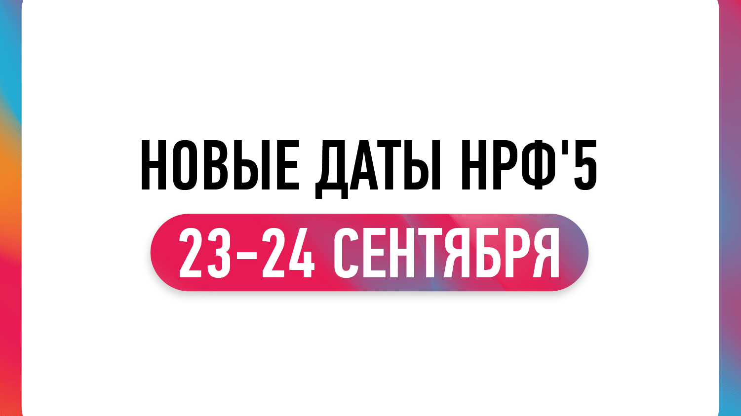 Организационный комитет НРФ'5 принял решение о переносе деловой программы, шоу-показа «Ночь пожирателей рекламы» и церемонии награждения «Топ-менеджеры НПБК» на 23 и 24 сентября 2021 года. Мероприятие переносится на более поздний срок в интересах защиты здоровья гостей, партнеров и спикеров Форума.