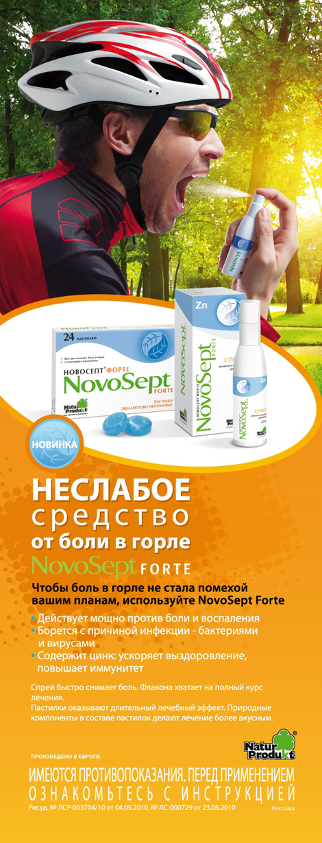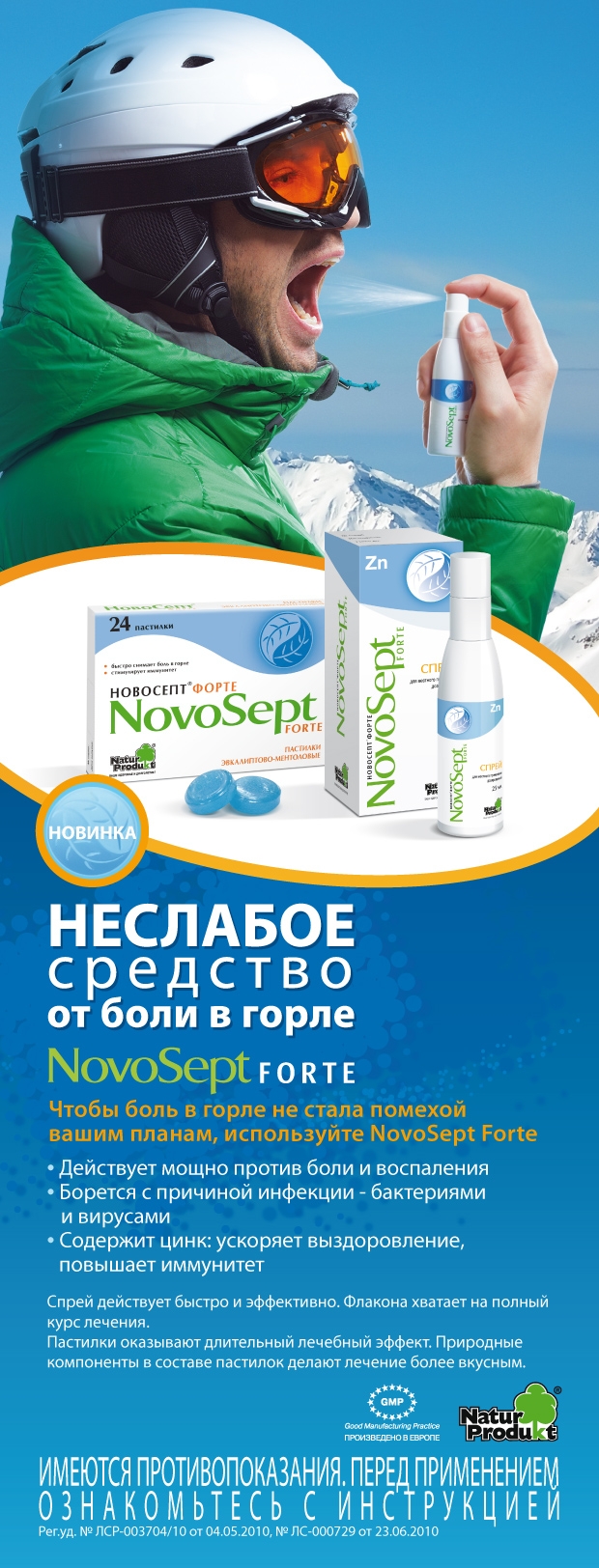 Коммуникационная группа Arabesque разработала креативную концепцию продвижения спрея от боли в горле Novosept Forte от Natur Produkt. Результатом работы креаторов стали два принта.