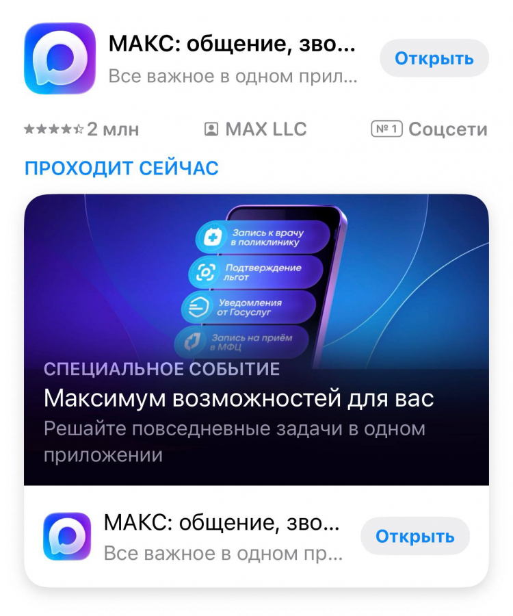 Мессенджер MAX получил русскоязычное написание — теперь на сайте и в магазинах приложений используется вариант «Макс», сообщают сразу несколько СМИ. В этом убедился корреспондент Sostav. В пресс-службе