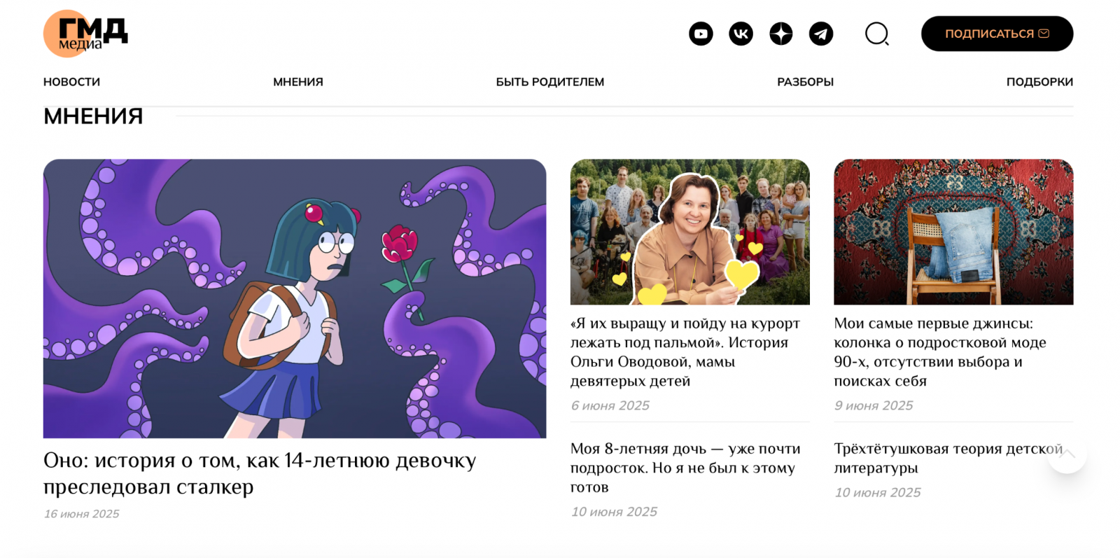- подкатегория Social media: медиакомпания Teller / журнал «Юный искусствовед» — «Юный искусствовед».
