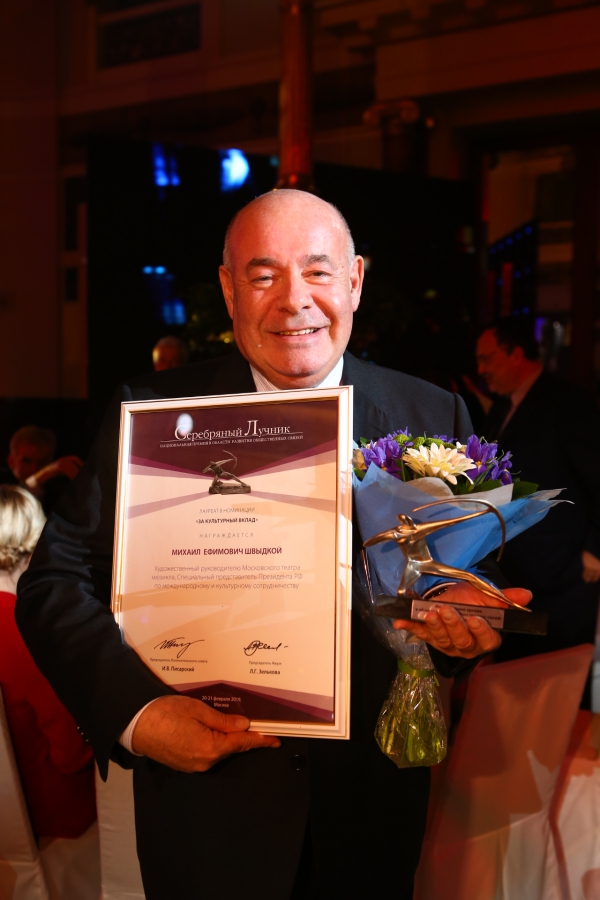 Старт церемонии награждения дала серия персональных номинаций. За успешную профессиональную и общественную деятельность в области культурной политики в номинации «За культурный вклад» статуэтка «Серебряного Лучника» была вручена художественному руководителю Московского театра мюзикла Михаилу Швыдкому.