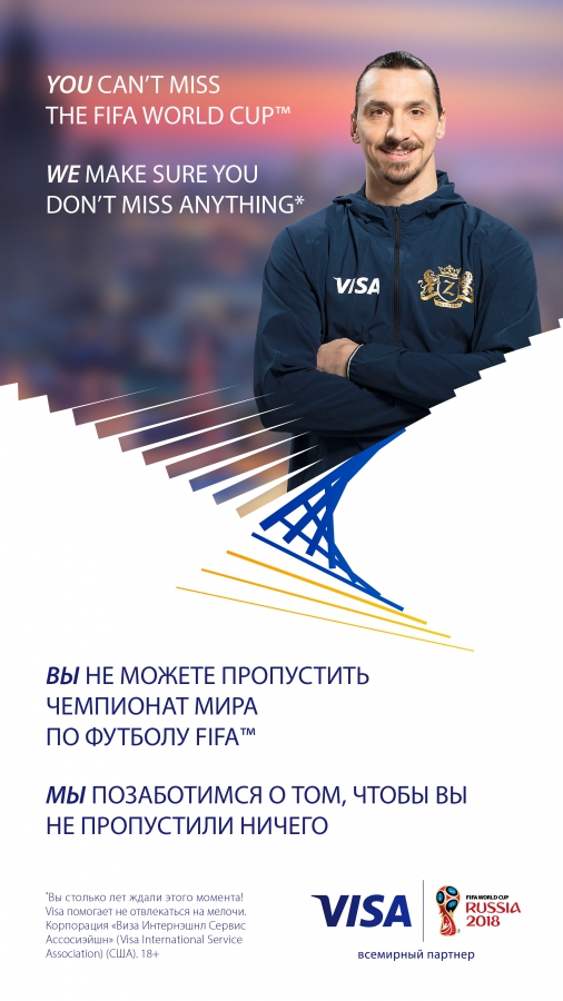 Лицом маркетинговой кампании Visa стал известный футболист Златан Ибрагимович. Выбор амбассадора обусловлен не только его исключительной популярностью и спортивными достижениями — Златан также является послом ООН, предпринимателем и полиглотом (в его арсенале — пять языков).