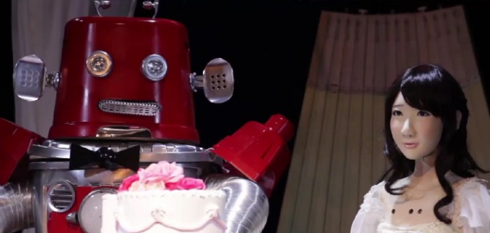 Узами брака себя связали робот Фройс и невеста-андроид Юкирин. На церемонии также присутствовал Маява Денки, разработчик роботов, который вел «девушку» под венец.