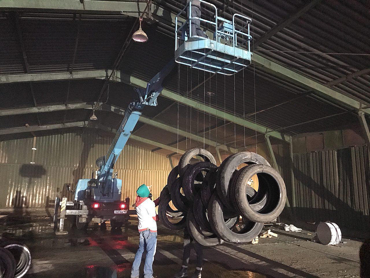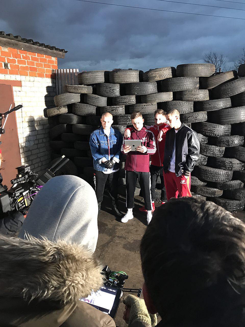 В центре ролика – хоккейный матч. За ним следят механики в автомастерской, напряженно постукивая по шинам на мотив кричалки «Спартак – чемпион!». С них начинается грандиозный шинно-музыкальный перфоманс, в который с каждой секундой вплетаются новые неожиданные персонажи: гротескные хулиганы, типичные болельщики, самураи. Каждый герой взаимодействует с шинами на свой манер.