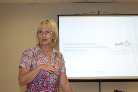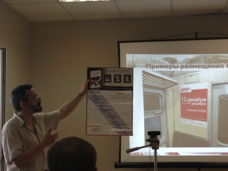 Кроме приглашенных экспертов в течение двух дней со своими презентациями выступили специалисты отдела транзитной рекламы. Выступления перешли в интерактивное обсуждение насущных вопросов сегмента. Особенно активно обсуждались вопросы эффективного медиапланирования, своевременных фотоотчетов и ценообразования. Елена Лазарева осветила вопросы регионального размещения рекламы в метро. Далее Наталья Станкевич рассказала об особенностях размещения рекламы на коммерческом транспорте в Москве и Московской области. Александр Выгонов рассказал о ценообразовании, медиапланировании.