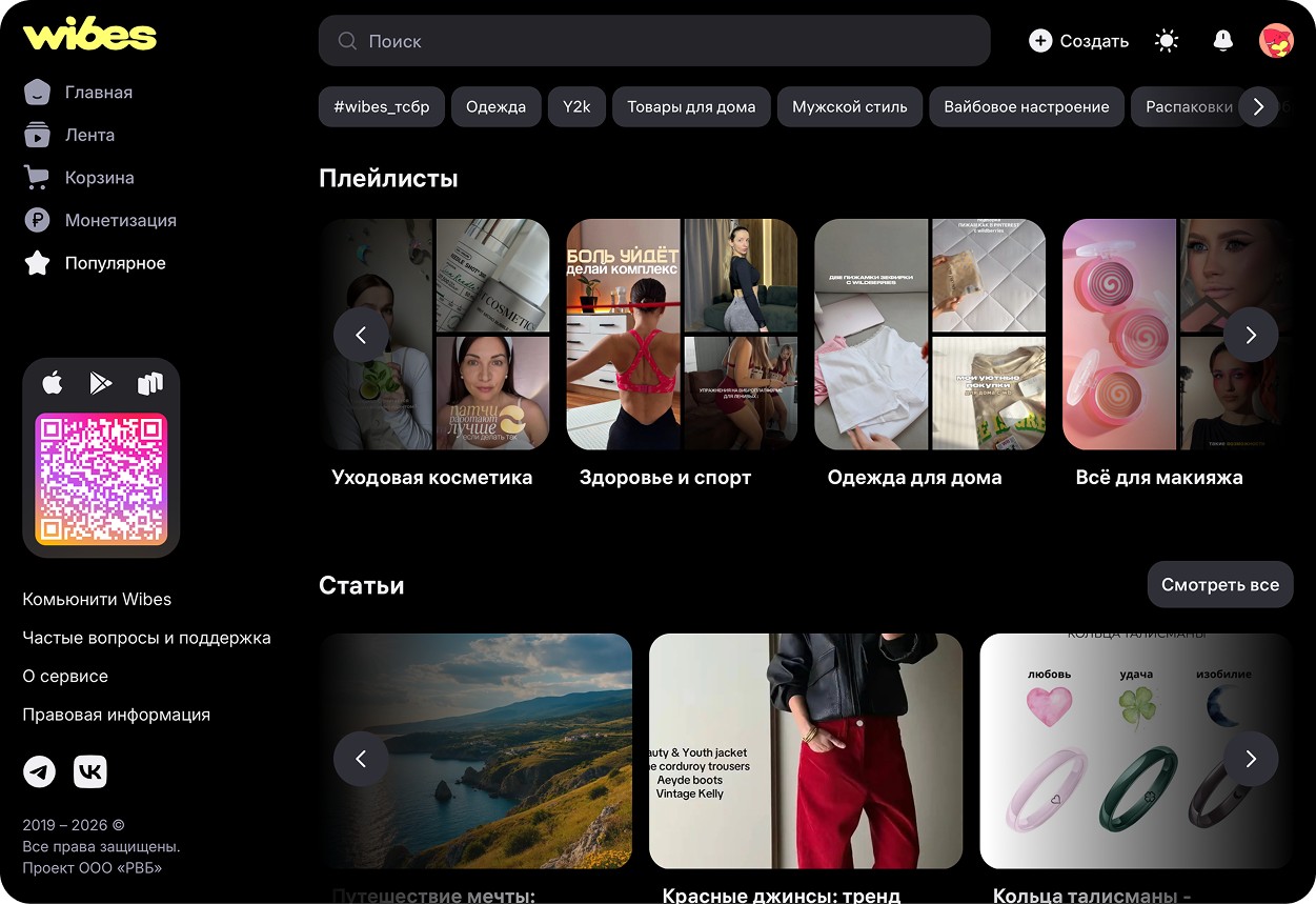 Wibes — платформа, запущенная Wildberries, которая развивается на стыке социальной сети и e-commerce. Контент здесь представлен в формате коротких видео, обзоров и подборок, а пользователь может сразу перейти к карточке товара внутри экосистемы.