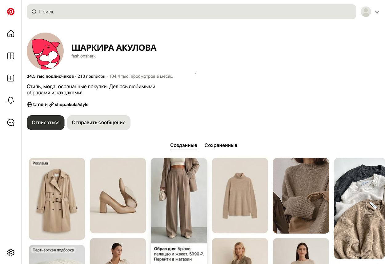 Именно поэтому Pinterest становится особенно эффективной площадкой для ниш с отложенным спросом — таких как фэшн и бьюти, интерьер и ремонт, рецепты и лайфстайл, а также e-commerce, где пользователь заранее ищет вдохновение и решения перед покупкой.
