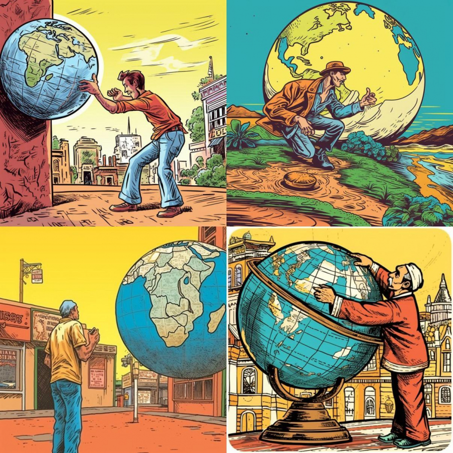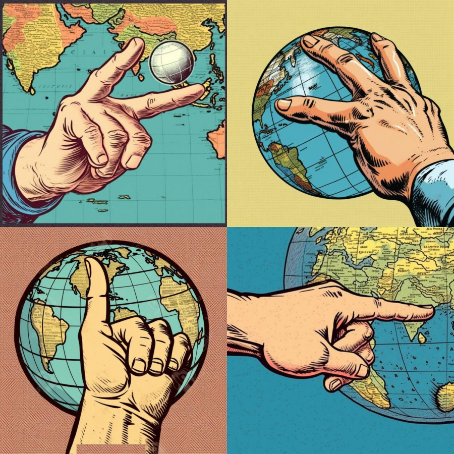 Почему-то, и Midjourney и Stable Diffusion немного сходят с ума, если попросить их сгенерировать изображение под запрос «Человек показывает пальцем в Бразилию на глобусе».