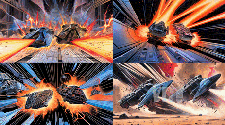 Теперь представьте, что творится в голове у Midjourney, когда её просят сгенерировать кадр из комикса по звездным войнам.