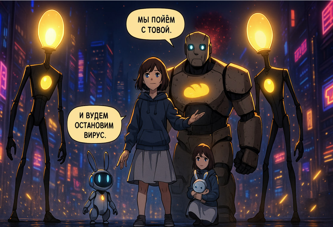 Мне кажется, за эти дни GPT меня немного «возненавидел» и точно устал, но результат стоил того: у меня получился настоящий комикс. Ошибки и даже странные кадры я использовала в сюжете, а все сложности превратились в крутые лайфхаки. Этот опыт научил меня тому, что главное в работе с AI — воспринимать его как не очень доходчивого друга. И разжевывать ему все, что тебе нужно.