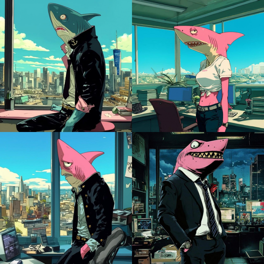 Изначально для комикса хотели взять стиль Gorillaz, который очень нравится авторам визуально. Но в процессе генераций поняли, что их стилистика не подходит для акулы, потому что Шаркира сама по себе милая и добрая, а в стиле Gorillaz акула получалась грубой, агрессивной и слишком антропоморфной.