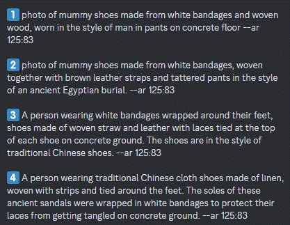 Ну и самое интересное оставили напоследок — историю о лаптях. Даже с использованием референсов оказалось очень сложно объяснить нейросети, что же это такое.
