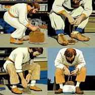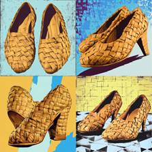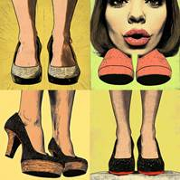 A pop art comic book style poster in the style of Andy Warhol. bast shoes --cref