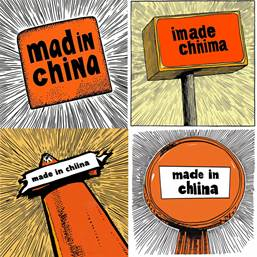 pop art comic book style poster in the style of Andy Warhol. Vector brown ink stamp with the text "made in china" on a white background, a simple and minimalistic design in the style of a professional logo --sref
