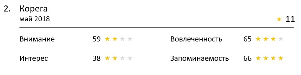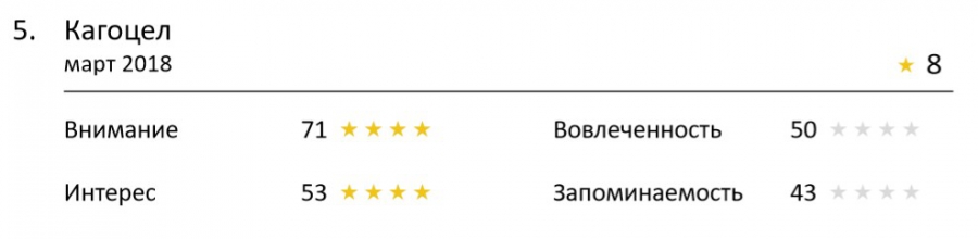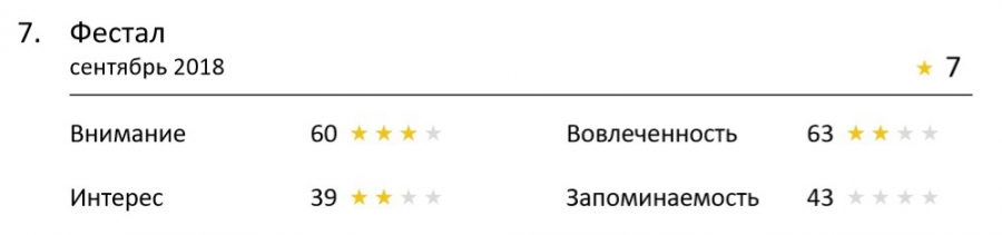 Среди всех роликов подборки, которые пытались удержать на себе пристальный взгляд зрителя, только двум удалось завоевать максимальные 4 звезды по показателю «Внимание».