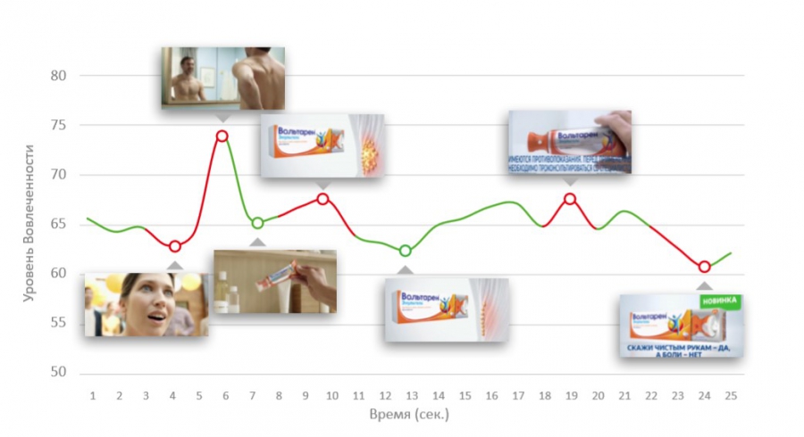 Казалось бы, сюжет не слишком оригинальный для рекламы лекарственных средств. Действительно, было плохо — помазал — стало хорошо. Но оказывается, что даже при не очень оригинальном сюжете можно получить высокие значения нейропоказателей.