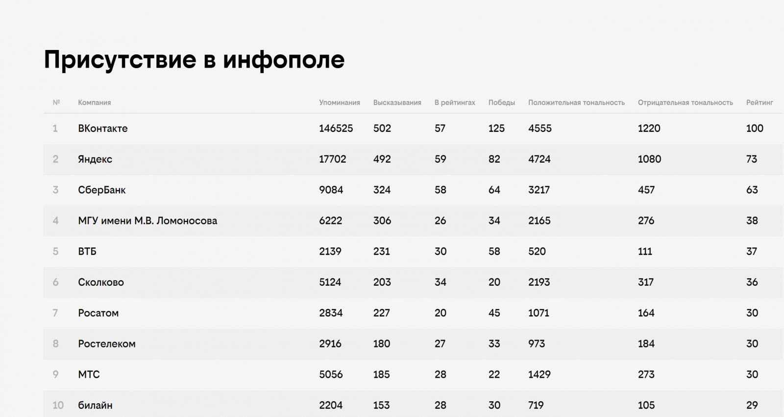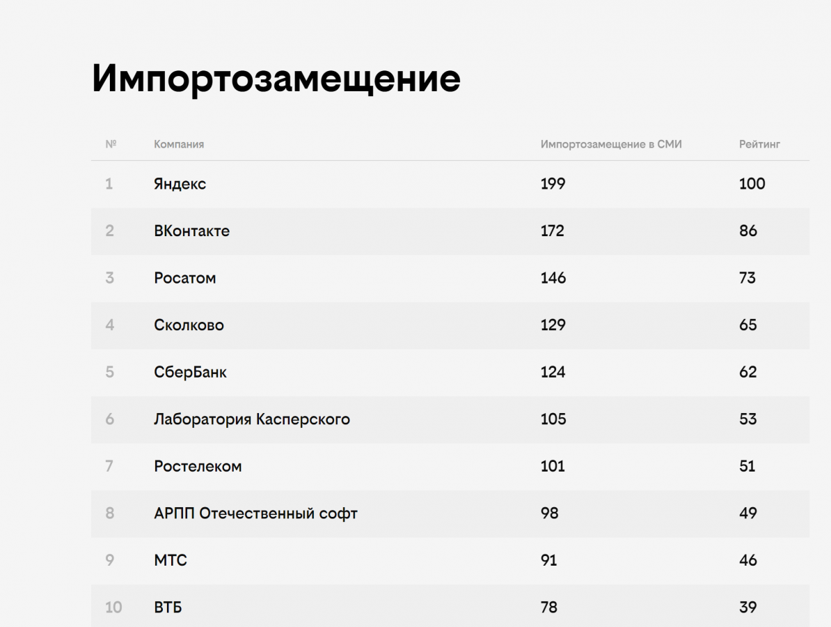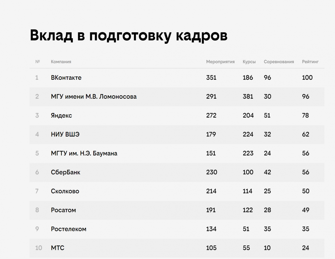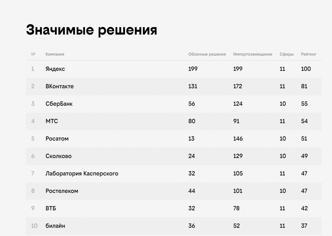 Во многих номинациях лидируют компании «Яндекс», VK и «Сбер».