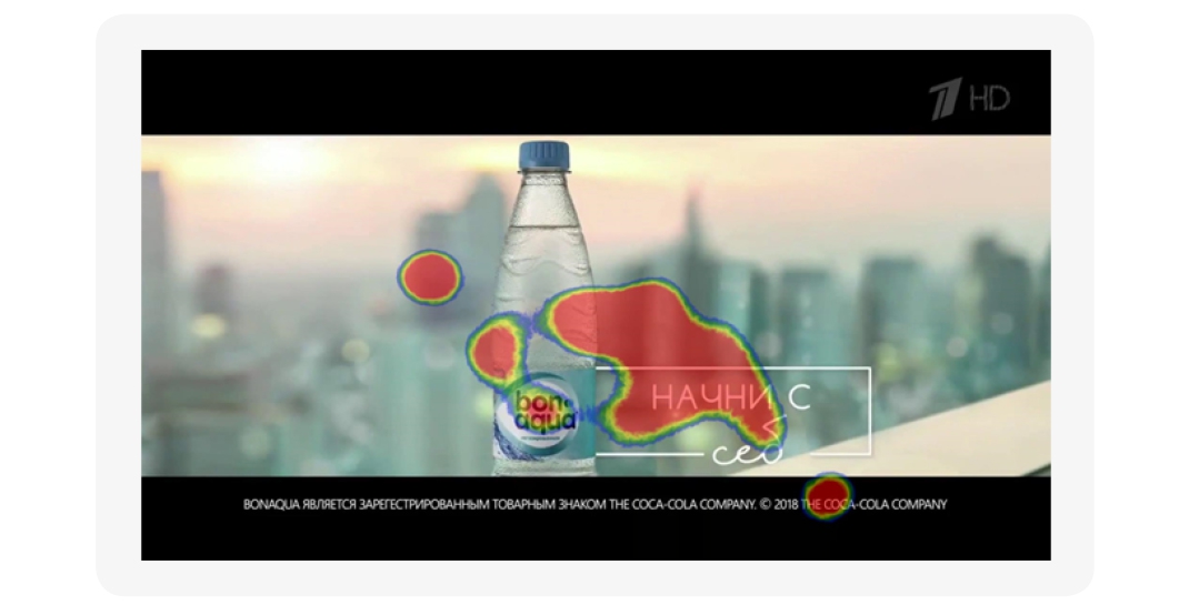 Анализ данных социологии показывает, что среди респондентов, участвующих в данном исследовании, большинство знают данный бренд, а более 50 % употребляют воду BonAqua чаще, чем другие. То есть этот бренд стал привычным для значительной части целевой аудитории. Можно предположить, что это связано с активной рекламой. Кроме того, на протяжении ролика питье воды с показом бутылки и логотипом присутствует в 5 эпизодах общей длительностью более 10 секунд, а демонстрация самой бутылки еще около 5 секунд. Причем данные айтрекера показывают, что респонденты очень внимательно смотрели на пьющих людей, заметили логотип и прочитали слоган.