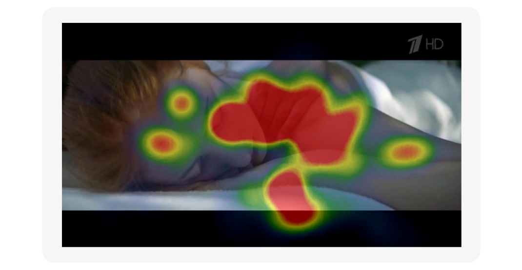 Анализ средних за ролик показателей несколько удивляет. Данный ролик попадает в 20 % лучших по запоминаемости и интересу на фоне достаточно средней (хотя и не низкой) эмоциональной вовлеченности и совсем низкого когнитивного внимания. С чем это связано?