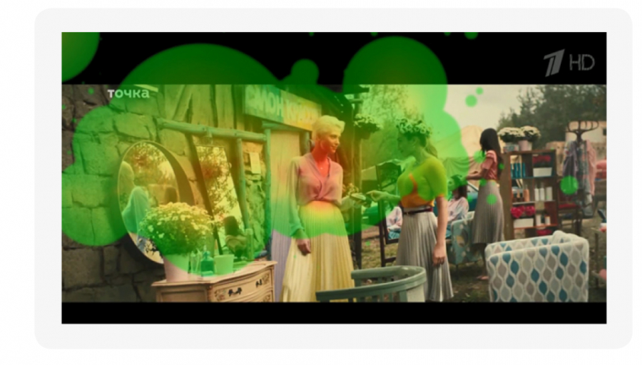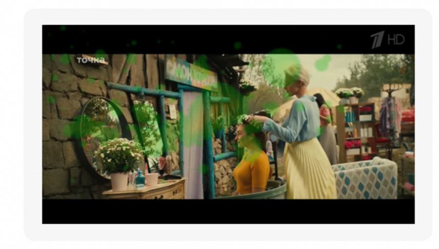 Причем на тепловой карте в следующие секунды видно, зрители заметили, что клиентка расплачивается картой, а приветливый взгляд хозяйки и довольный вид клиентки показывают, что всех это устраивает.
