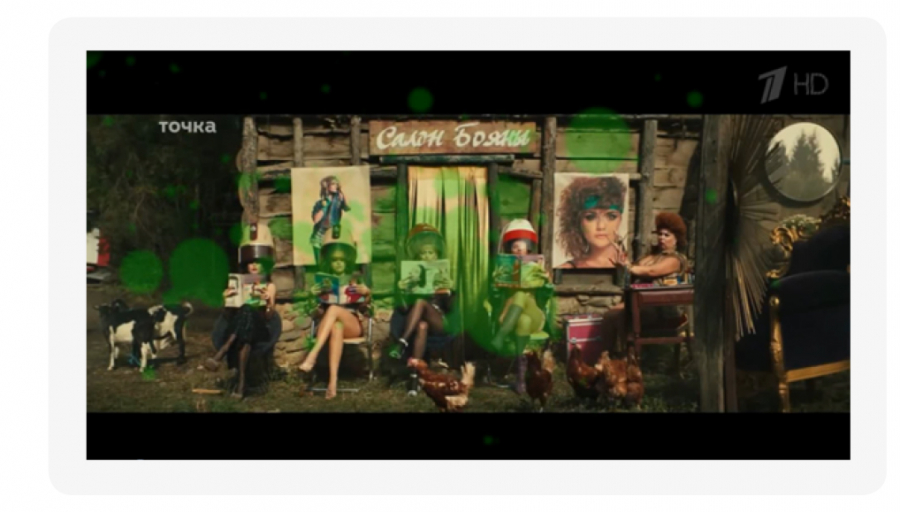 На протяжении первых секунд происходит повышение уровня вовлеченности и валетности, что характерно для интереса, удивления. Действительно, салон красоты в сарае, вокруг которого ходят куры и коровы, с сушилками для волос времен 80-х и картинки причесок с химической завивкой вызывают улыбку и интерес.