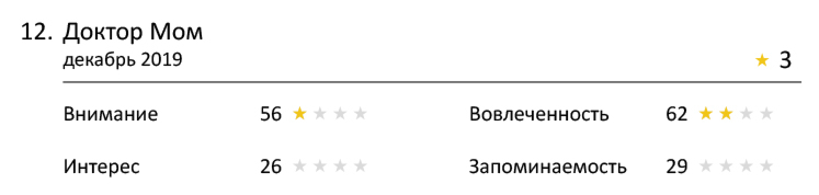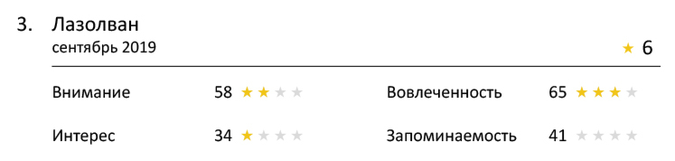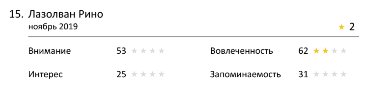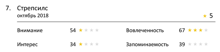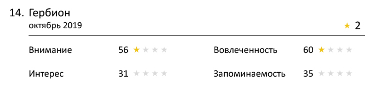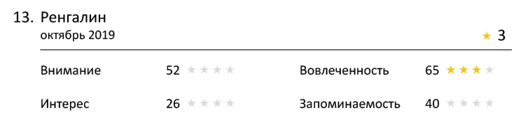 Интересный факт: эмоциональная вовлеченность — единственный из всех показателей этого выпуска, в котором нет ни одного ролика без звезд. Маленькая, но все же победа!