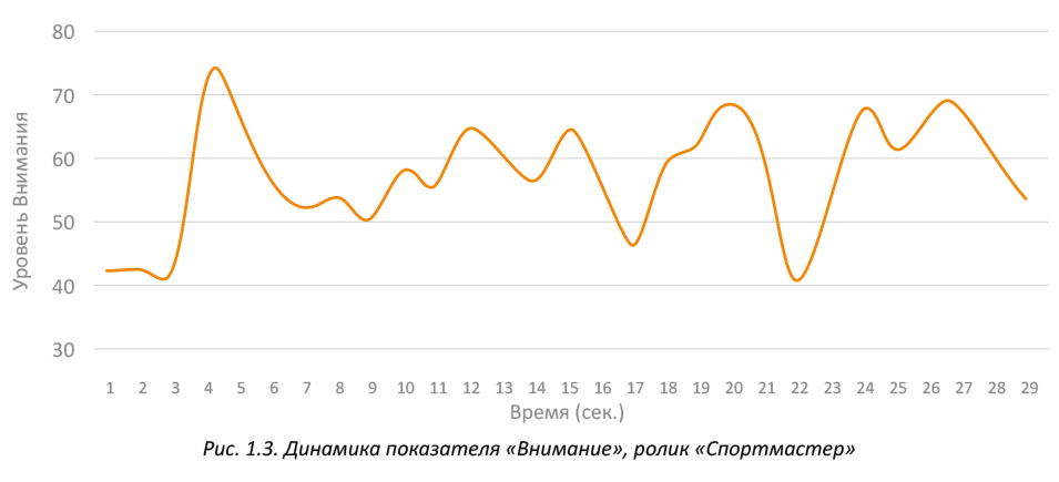А почему же у ролика «Спорматер» не максимальные 16 звезд? Из всех составляющих нейроиндекса мы видим по показателю когнитивного внимания 3 звезды вместо 4. В чем же дело? Ведь есть и динамика,