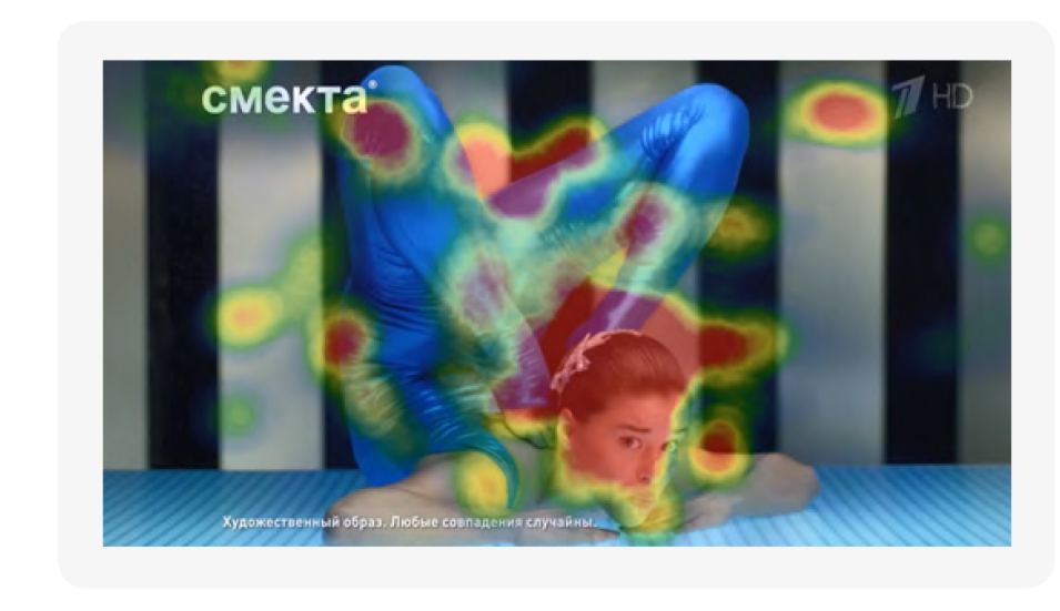 Что же обычно привлекает внимание? Прежде всего, движение. Наше зрение устроено таким образом, что движущиеся объекты привлекают вниманиие в первую очередь, и это требует значительных мозговых ресурсов, чтобы оценить направление, скорость и характер движения. Ролики-победители как раз демонстрируют этот прием. В рекламе «Спортмастера» зрители становятся свидетелями спортивных игр, в ролике «Смекты» — бег, тяжелоотлет, карусель и девушка, занимающаяся йогой.