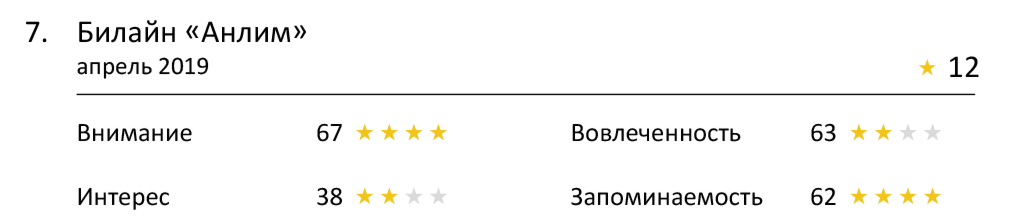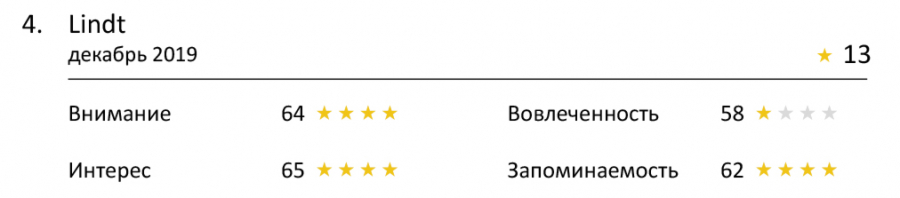 Кроме того, в топе с четырьмя звездами оказалась реклама «Смекты», Sumsung A50, «Билайн «Анлим»» и Lindt. Эти ролики мы также можем смело наградить званием «лучшие из лучших» за последний год и показывать их как отличный пример привлечения внимания.