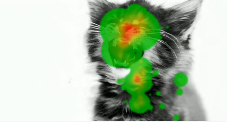 Несмотря на небольшие размеры логотипа, он привлекает внимание с самого первого появления, оставаясь в фокусе внимания даже когда зритель следит за игрой котёнка, его прыжками. Хотя известно, что неподвижные объекты, да ещё не несущие яркой эмоциональной реакции, привлекают внимание меньше.